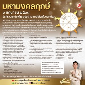 วันที่ ๖ มิถุนายน ๒๕๖๘ นี้ ถือเป็น “ฤกษ์พิเศษ” ซึ่งเหมาะแก่กิจการดังต่อไปนี้: