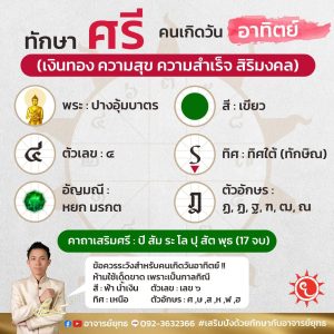 #เกิดวันอาทิตย์ โดยจะนับตั้งแต่หลังพระอาทิตย์ขึ้นแล้ว บางท่านเกิดวันเสาร์กลางคืน ตอนตี ๕ กว่า ๆ ให้นับว่าท่านเป็นคนเกิดวันเสาร์ จะนำ